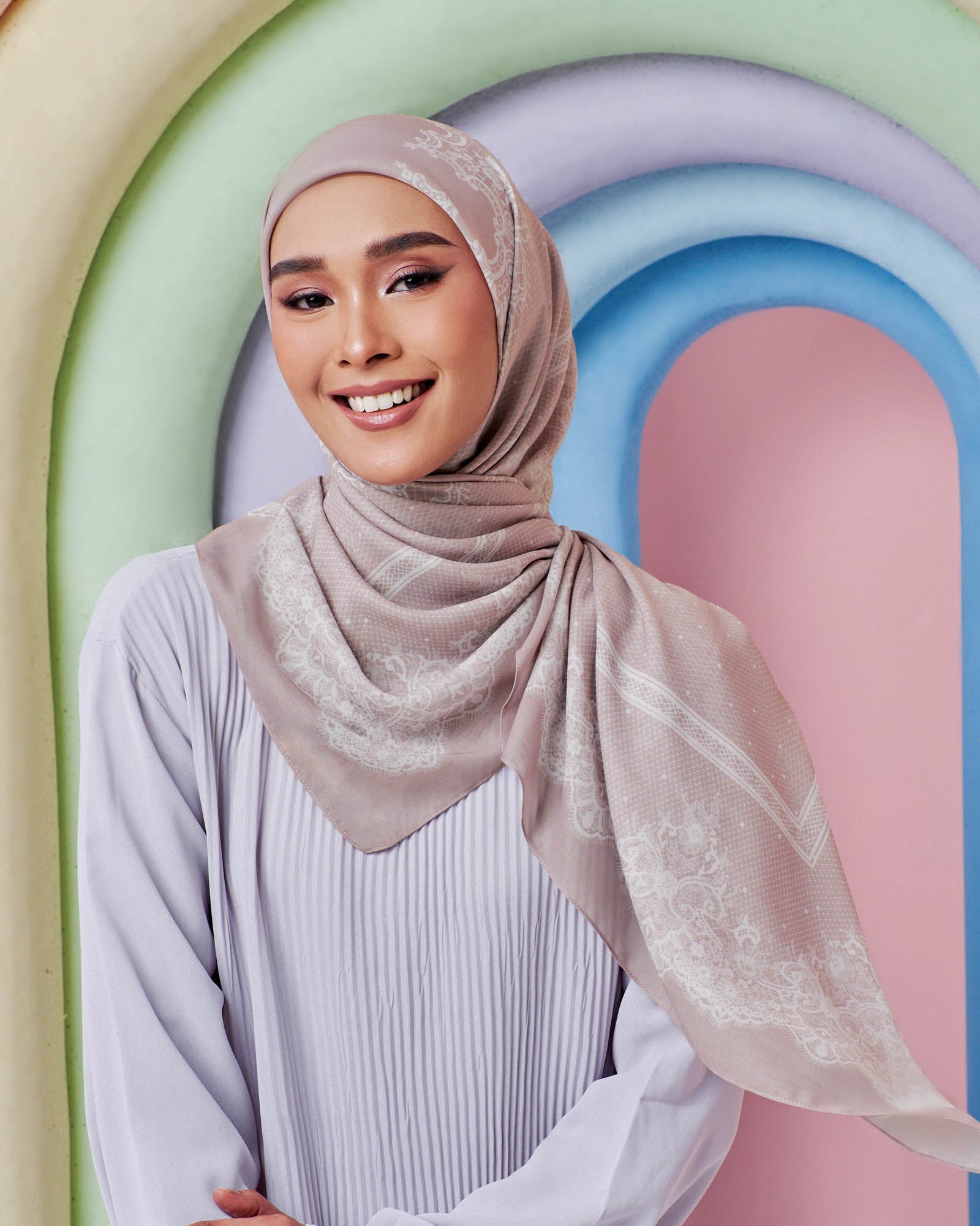 Crafted with a lace element as its concept, our new collection, Chantiliy was design to embrace the beauty of the netted aesthetic within scarves. Named after the city of Chantily in France, this handmade bobbin lace art was known for its fine ground intertwined strings with abundant detail, outlined in cordonnet pattern, a flat untwisted strand