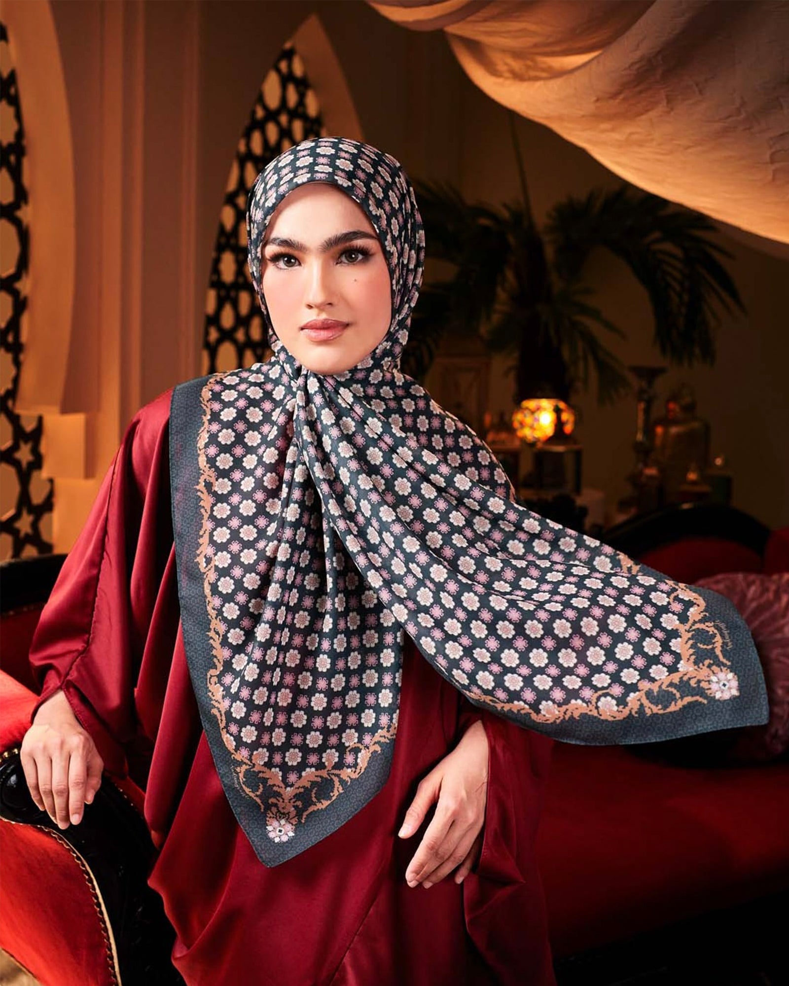 Influence by its usage to decorate buildings, mosque, palace and mihrab, this beautiful knotted ornament are now embedded in our new collection, with 5 beautiful colour and 2 styles to choose from.