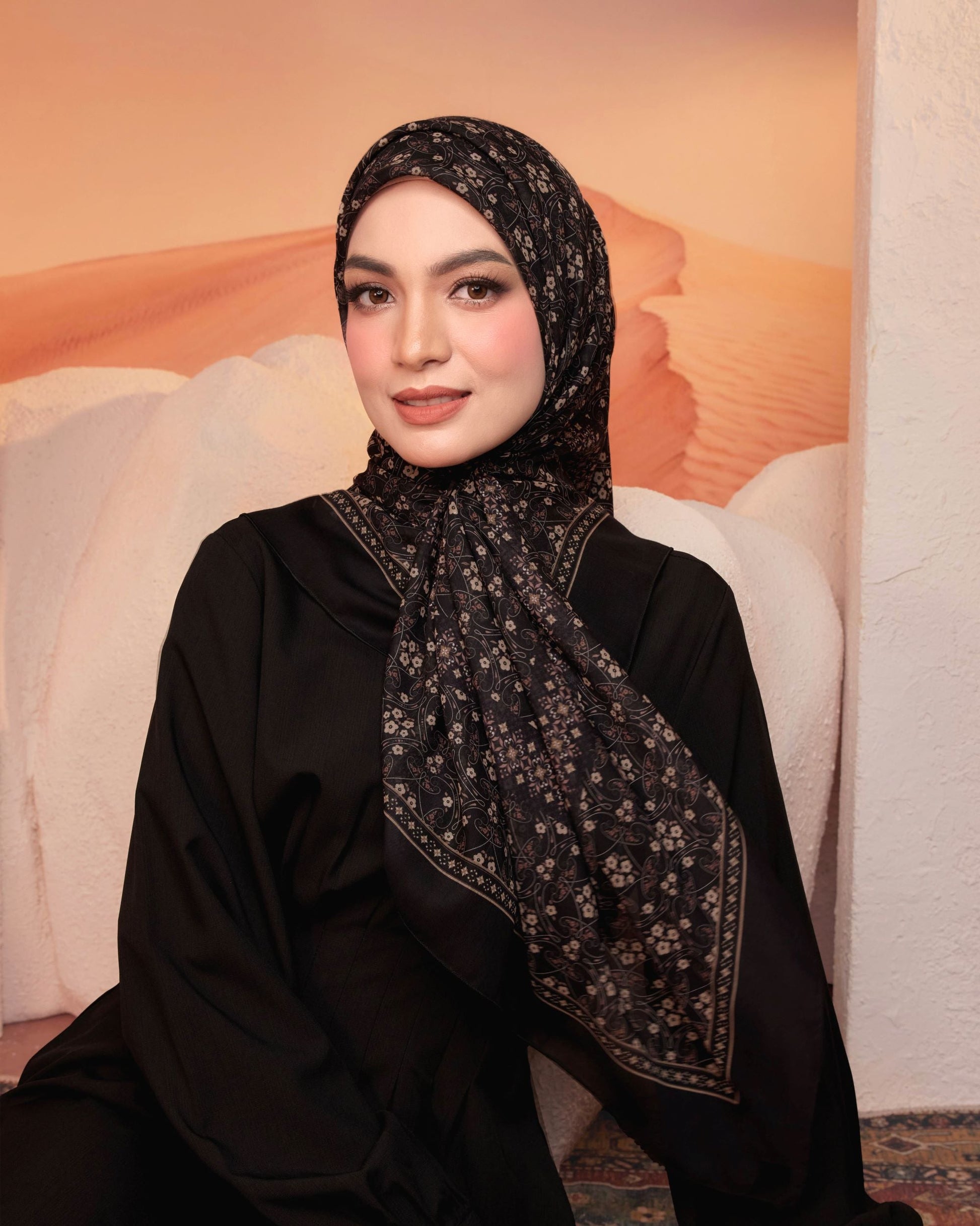 Discover the beauty of exquisite arabic elegance with our new Rawdah Collection. Features a stunning Arabic-inspired patterns, perfect for adding a touch of cultural elegance to any outfit. Made from soft, breathable fabric, it's comfortable for all-day wear. Ideal for both casual and formal occasions, this tudung blends classic design with modern style.